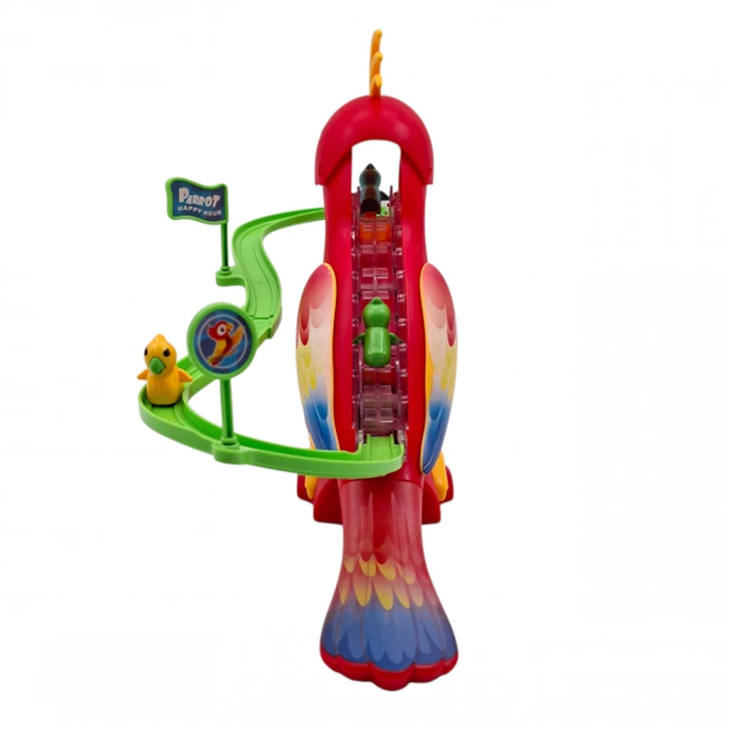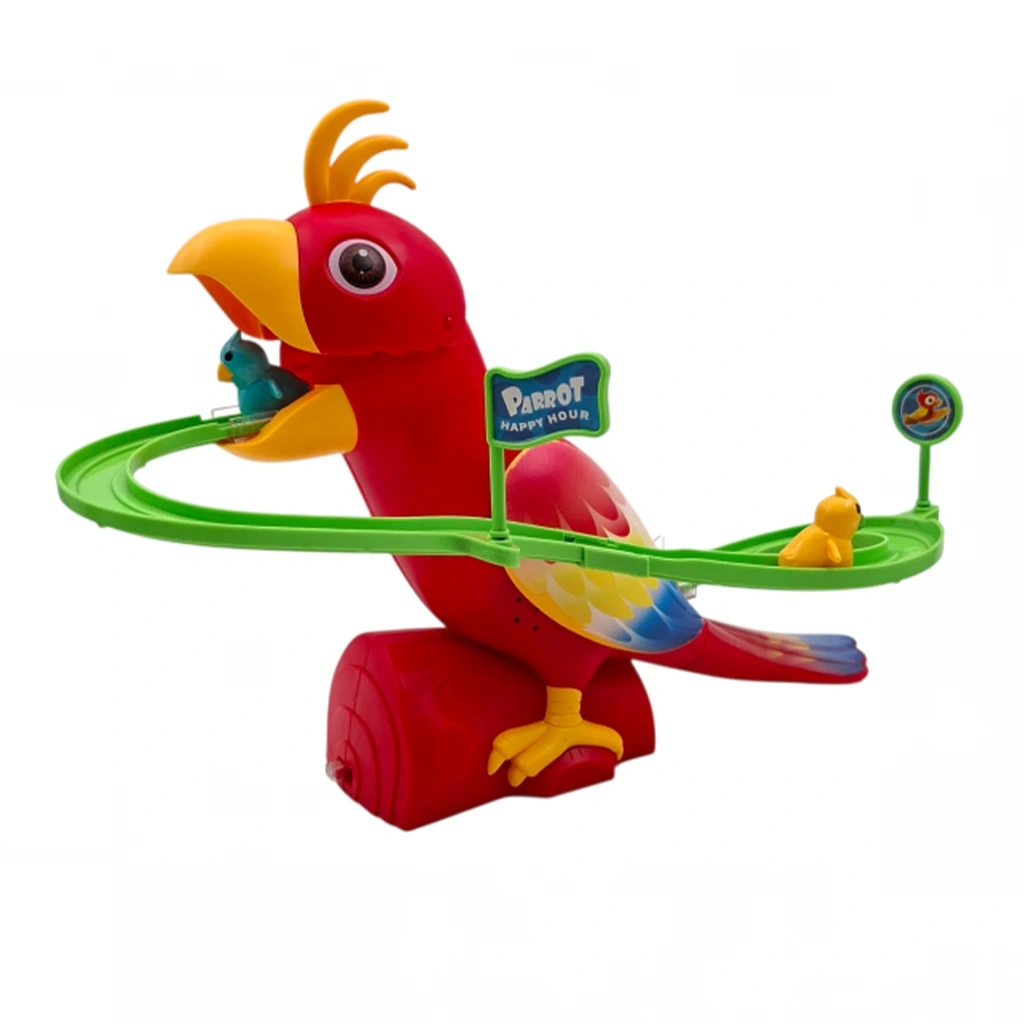 Papağan figürleri pistte kayarken müzik ve ışık efektleriyle oyun saatleri daha da eğlenceli hale geliyor. Pilli sistemi sayesinde kolayca çalışır ve çocukların dikkatini uzun süre canlı tutar.