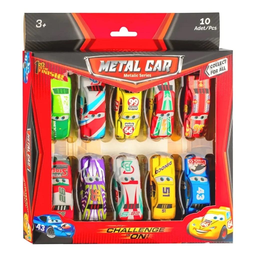 Kutu içerisinde farklı konseptlerde 10 adet metal araba bulunmaktadır.
