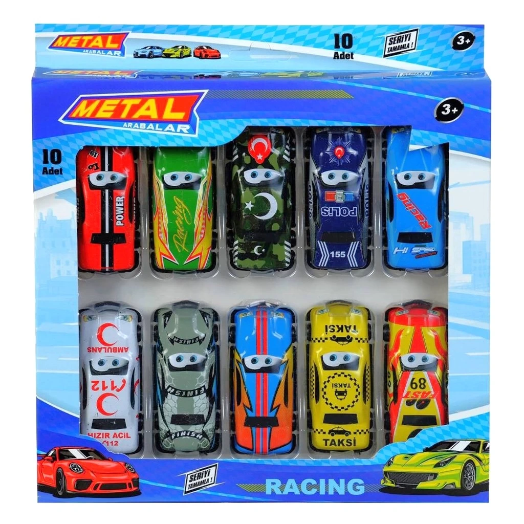 Kutu içerisinde farklı konseptlerde 10 adet metal araba bulunmaktadır.
