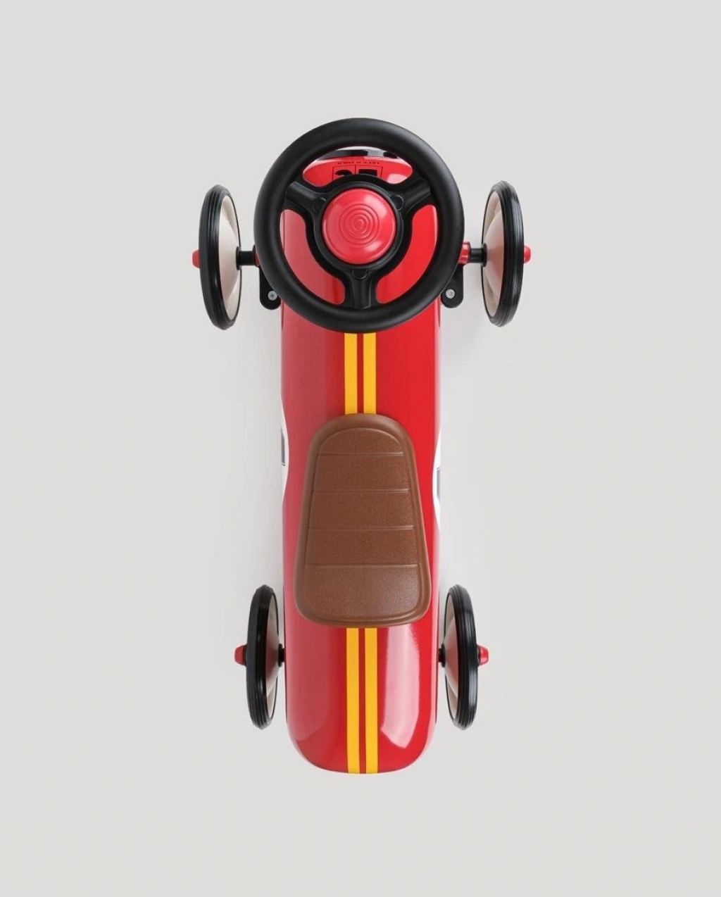 Retro detayları, sade kırmızı rengi ve metal gövdesiyle sadece bir oyuncak değil; çocuk odalarına nostaljik bir karakter kazandıran zarif bir parçadır. Estetik görünümüyle dikkat çekerken, sağlam yapısıyla uzun süre güvenle kullanılabilir.